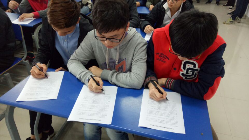 寝室长签订《宿舍文明公约》(摄影:徐华锋)