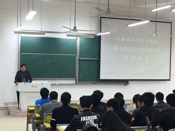 4月8日上午,能源与安全学院、材料科学与工程学院分党校第八期发展对象培训班开班仪式在明理103教室隆重举行。开班仪式由能源与安全学院党委副书记金德主持。能源与安全学院党委书记、分党校校长欧阳连勤,分党校班主任和辅导员出席了开班仪式。两个学院共140余位发展对象参加了本期培训。