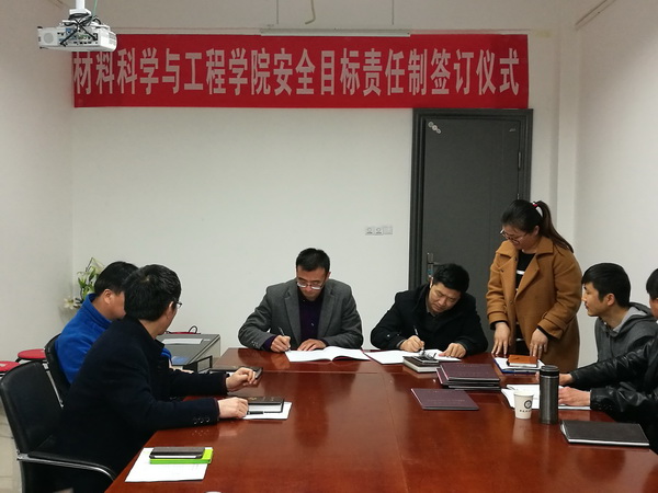 为了落实安全保卫工作,将安全责任进行层层分解,责任到人,做到处处有人管,事事有人抓,4月10日下午,材料学院在学院A302会议室,举行了安全保卫目标管理责任制签订仪式。