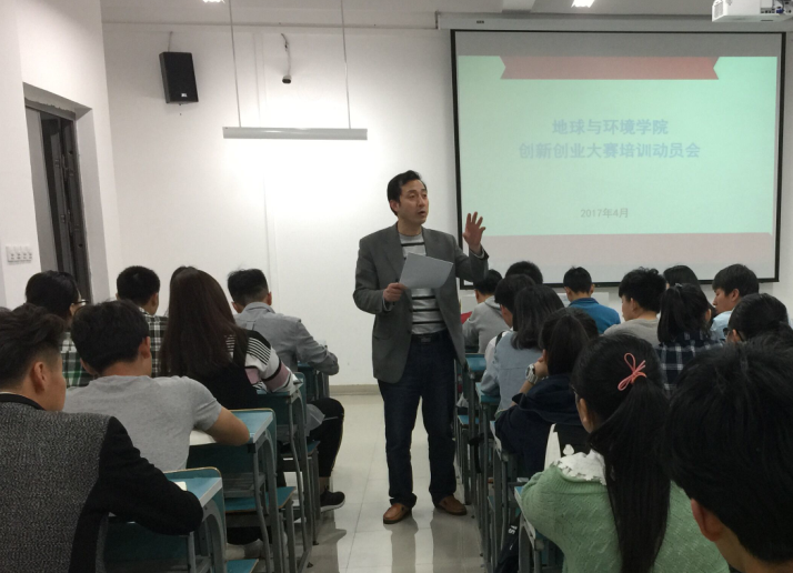4月18日晚,地球与环境学院在院202教室举办大学生创新创业培训交流会。学院党委副书记侯辉主持会议,学生辅导员、学生会科技实践团成员及各年级学生代表80余人参加会议。