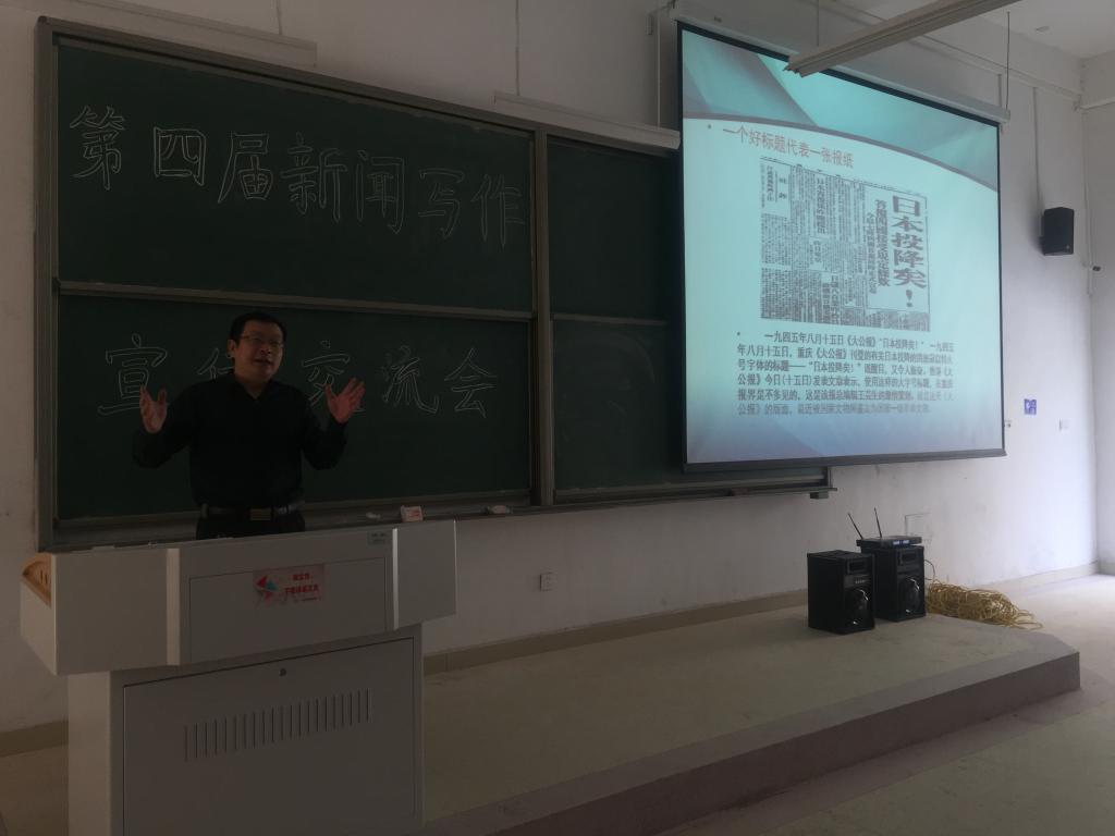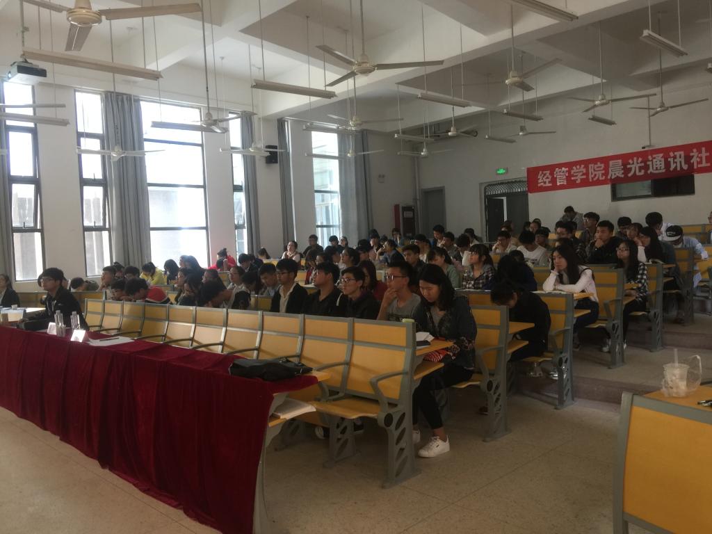 4月16日上午,经济与管理学院晨光通讯社举办第四届新闻交流宣传会,邀请《淮南日报》首席记者刘银昌在明理103教室举办题为“在互联网思维下如何采写精彩的教育新闻”的讲座。共有来自15个学院和4个校学生组织的140余名学生代表参加本次交流会。