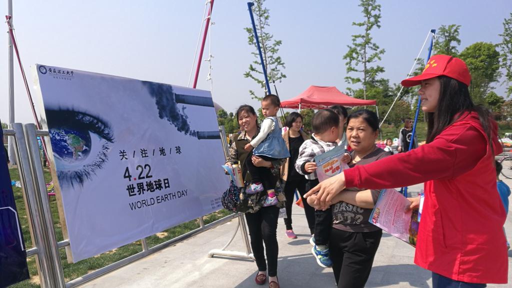 值第48个“4﹒22世界地球日”,4月22日上午,地球与环境学院联合淮南市国土资源局、淮南市土地协会在山南新区中央公园开展以“节约集约利用资源 倡导绿色简约生活——讲好我们的地球故事”为主题的地球科普知识宣传活动。