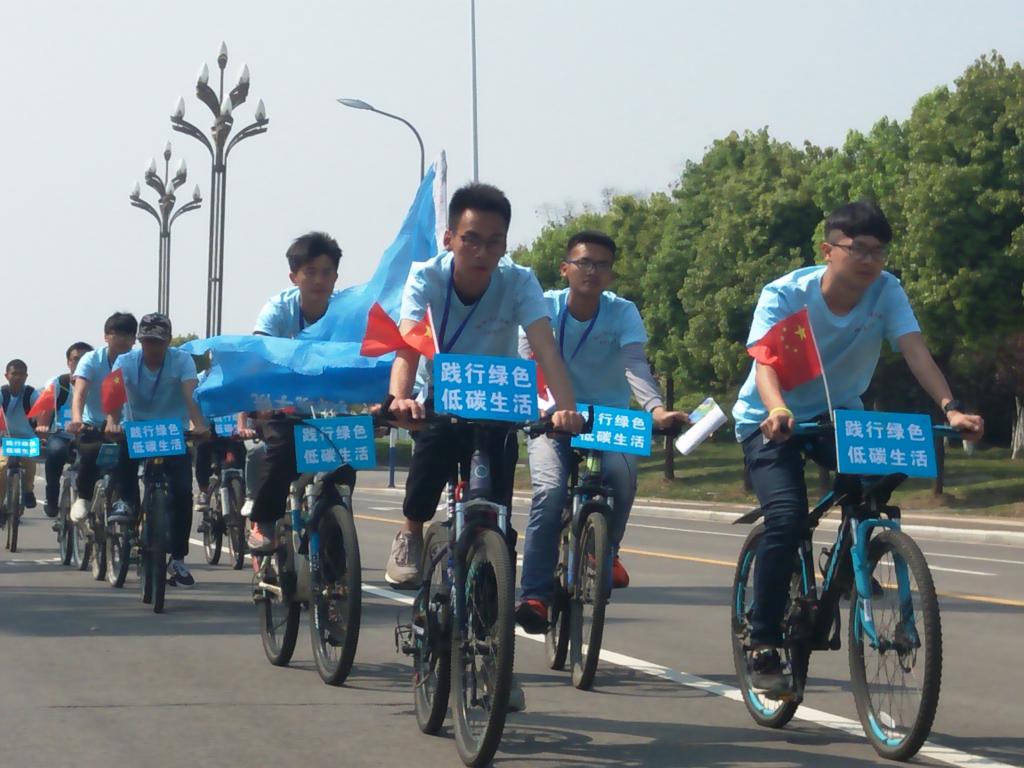 上午9时30分,另外20名志愿者组成了“绿色车队”,大家身着印有青年志愿者标志的文化衫,车前悬挂“践行绿色、低碳生活”的标牌,开展了环城骑行活动,引导和呼吁广大市民绿色出行,低碳环保。骑行车队沿途吸引了众多市民的目光,一些市民驻足向志愿者招手,以示鼓励和支持。