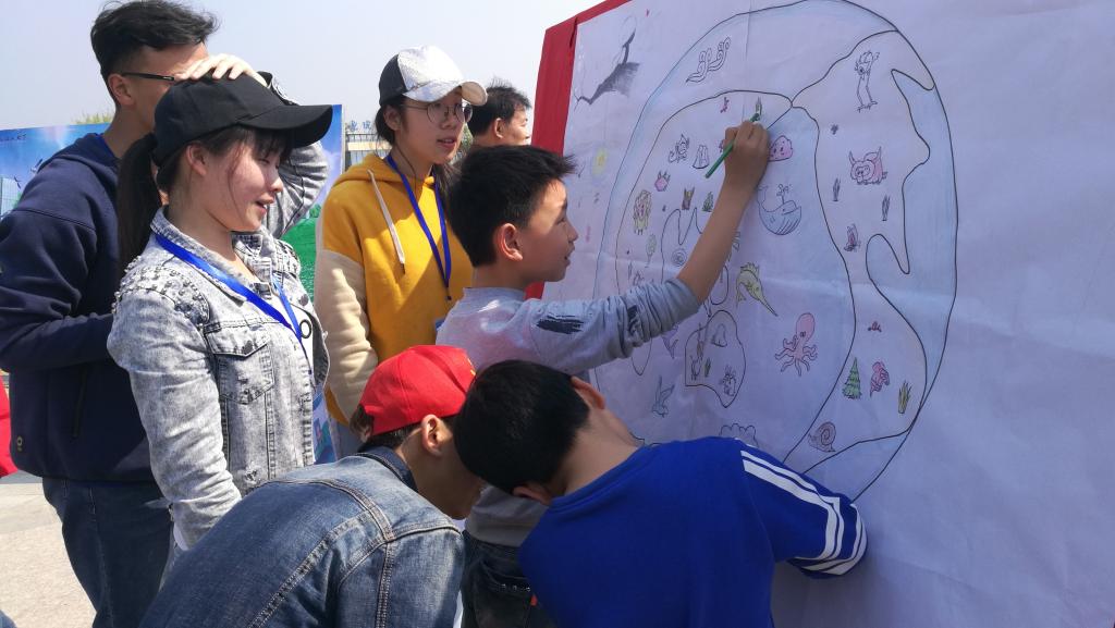 上午9点,地环学院环保流动学校和“雷锋班”的40多名大学生科普志愿者在公园湖边广场通过主题征文和图片展示、专题展板讲解、签名、发放宣传资料、有奖问答、播放音像资料等多种方式向市民讲述地球故事,普及地球资源、物种危机、低碳生活、水资源保护、地质灾害防治等方面的知识,呼吁市民珍惜地球资源,积极参与节约集约利用资源,从身边的小事做起,践行绿色、低碳生活。活动现场,志愿者们组织小朋友们开展了彩绘地球家园活动,小朋友们在彩绘墙上共同彩绘出心目中的地球。同时,志愿者们还组织了地球科普知识有奖问答和废旧物品置换绿色植物活动,提醒市民环保人人可为。
