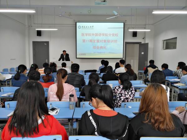 4月21日上午,医学院、外国语学院分党校第11期发展对象培训班毕业典礼在崇仁楼B119室举行。医学院院长张荣波在典礼上致辞并为学员代表颁发毕业证书。