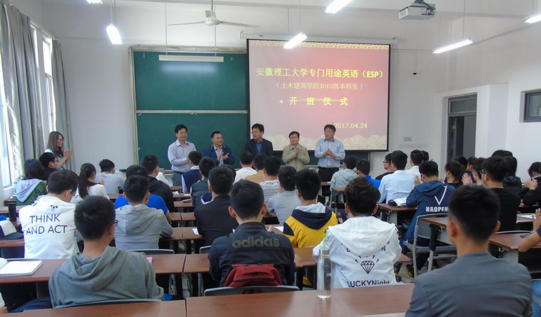 4月24日上午,我校专门用途英语(ESP)土木建筑学院2015级本科生班开班仪式在明理南209教室举行。教务处处长黄友锐、土木建筑学院院长马芹永等出席开班仪式,外国语学院党委书记、院长石秀光主持仪式。