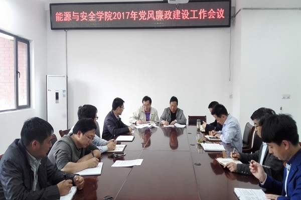 5月3日下午,能源与安全学院在宁远楼406会议室召开2017年党风廉政建设工作会议。学院党政班子全体成员、系主任、党支部书记、科级干部、辅导员参加了会议。会议由学院党委书记欧阳连勤主持。