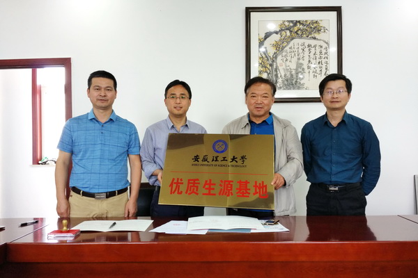 姚德利代表学校与沈尊华签署了“安徽理工大学优质生源基地”共建协议书并授予安徽理工大学“优质生源基地”牌匾。