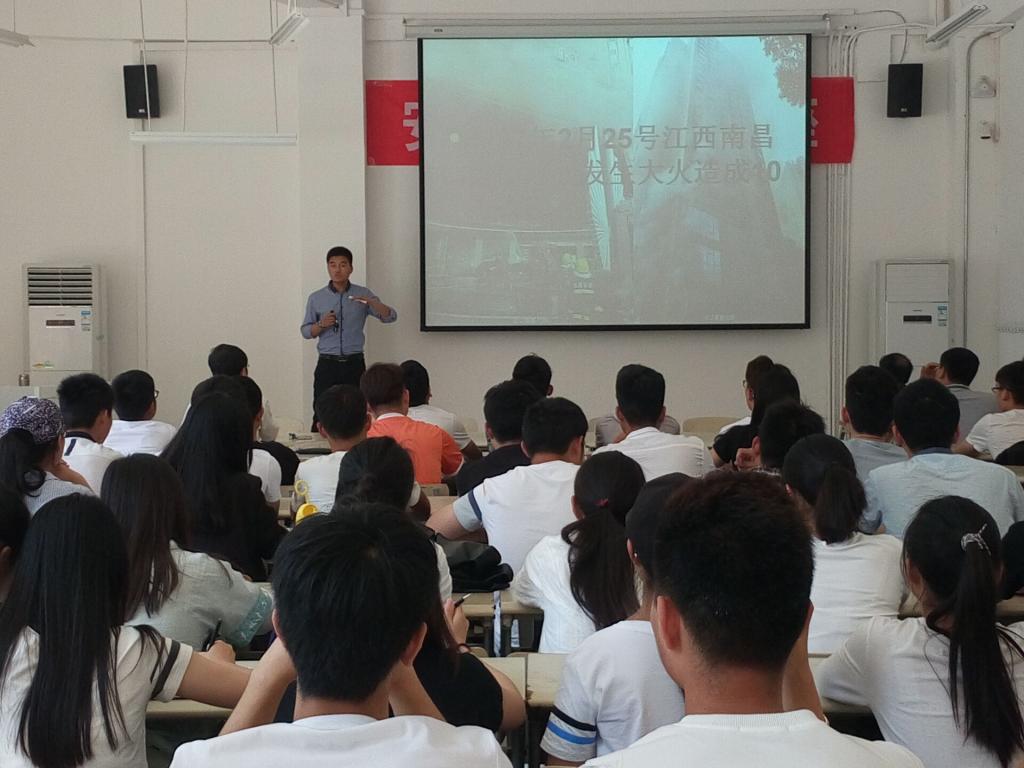 5月17日下午,化学工程学院在化工楼东102教室举行消防安全知识讲座。讲座由淮南市防火中心宣传办工作人员杨维超主讲,学院师生共100余人听取讲座,讲座由学院院长何杰主持。