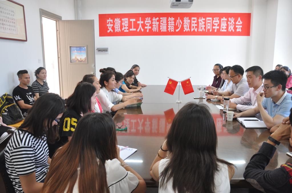为进一步落实新疆籍少数民族学生教育管理与服务,5月17日中午,学校在学生处会议室召开新疆籍少数民族学生座谈会。教务处副处长黄胜龙、后勤保障部饮食中心食堂管理服务中心主任刘恬、新疆内派教师杜佳、方菲和29名新疆籍少数民族学生参加了座谈会。会议由学生处副处长陈楠主持。