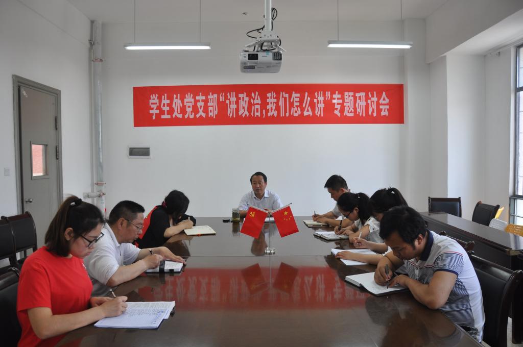 5月23日上午,学生处党支部在大学生活动中心召开了“讲政治、重规矩、作表率”专题教育研讨会。会议由支部书记田中良主持,全体党员参加了会议。