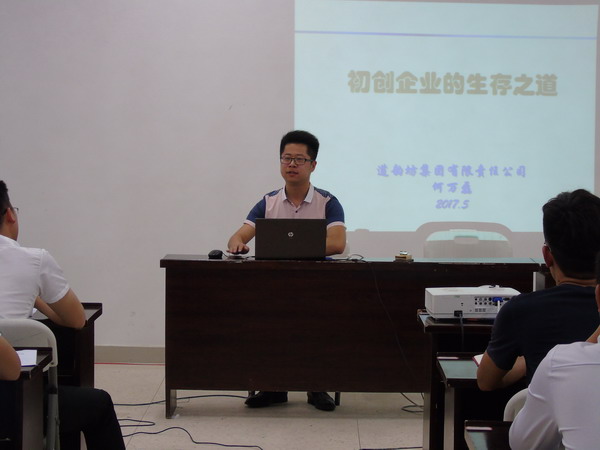 本次大学生创业论坛,邀请了正在大学生创业基地孵化的企业代表、2016届化学与工程学院毕业生、2013年大学生创业基金扶持项目道韵坊集团有限公司董事长何万磊为创业项目负责人作了《初创企业的生存之道》创业报告,受到了与会人员的好评。