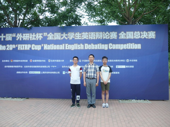 5月18日—24日,第二十届“外研社杯”全国大学生英语辩论赛全国总决赛中在外交学院沙河校区举行,我校外国语学院开自延、方菲两位同学组队参赛并荣获三等奖。