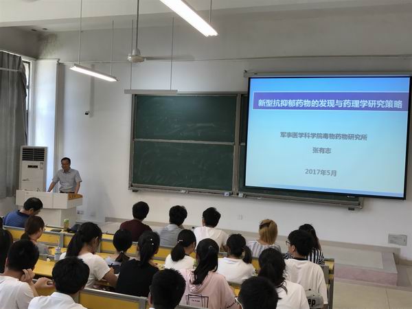 5月26日下午,军事医学科学院毒物药物研究所研究员、博士生导师张有志研究员应医学院邀请,在明理108教室作了题为“新型抗抑郁药物的发现与药理学研究策略”的学术报告。讲座由医学院副院长张超主持。医学院部分教师和学生150余人聆听了报告会。