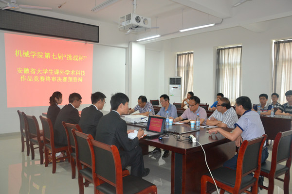 5月31日下午,机械工程学院邀请专家评委,在学院A402会议室召开会议,对学院入围省“挑战杯”终审决赛的3件作品进行赛前模拟答辩。各项目指导教师、团队成员参加了会议。会议由院长王传礼主持。
