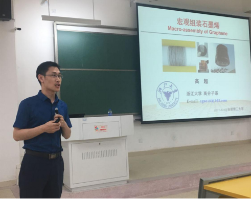高超教授以“一个发现,四大原创,六大核心”为主线,介绍本团队以氧化石墨烯液晶现象的发现为重要基础,在石墨烯纤维、石墨烯无纺布、石墨烯连续组装膜、世界最轻材料石墨烯气凝胶这四种宏观组装材料的原创性工作。