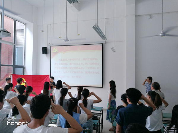 大会伊始,全体党员进行宣誓。学生党员代表许雅群带领全体党员,面向党旗,庄严宣誓。