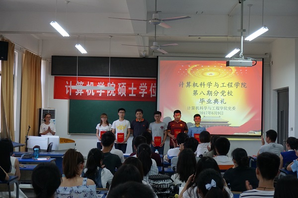 6月9日下午,计算机科学与工程学院分党校第八期发展对象培训班毕业典礼在求本楼B401会议室举行。计算机学院院长陆奎、院党委副书记蒋群,学院辅导员和培训合格的76名学员参加了毕业典礼。