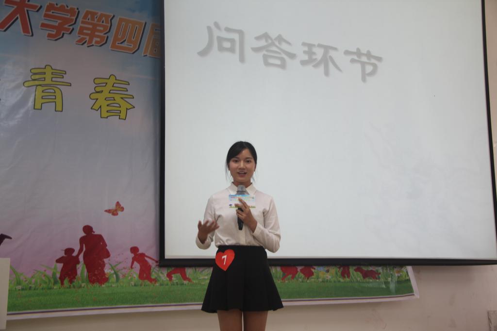 心灵大使选拔赛共分为“自我展示”、“活动展示”和“现场问答”三个环节。“自我展示”环节选手们以新颖独特的PPT或MV进行自我介绍,博得全场阵阵掌声;在“活动展示”环节中,选手们为大家展示了自己组织开展的心理公益活动,选手们或收集微笑展示或开展公益讨论或组织班级活动,各具特色,收效显著;“问答环节”中,选手们面对大学生常见的人际交往、学习焦虑等心理案例及社会热点问题时,沉着冷静,分层剖析,提出自己的见解与建议。