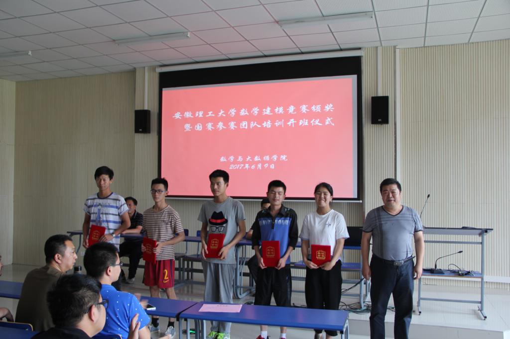 由教务处、校团委和数大学院共同主办的校2017年大学生数学建模竞赛,在论文评阅的基础上经过大赛组委会研究,共评选出一等奖团队10支、二等奖团队20支、三等奖团队30支。仪式上,赵前进、李勇、李强分别为获得一、二、三等奖选手代表颁奖。