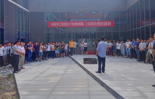 为扎实开展校园安全年活动,进一步加强学院师生消防安全防范意识和能力,6月14日下午,材料学院在崇义楼一楼院内举行了2017年消防知识讲座、义务消防员培训暨应急疏散演练。