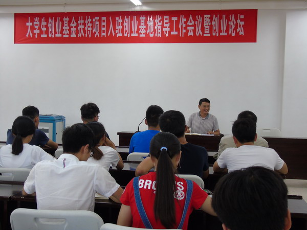 6月29日下午,毕业生就业工作处在厚德馆B211室举办大学生创业基金扶持项目入驻创业基地指导工作会议暨创业论坛。毕业生就业工作处处长谢振安出席会议并指导学生开展创业工作。