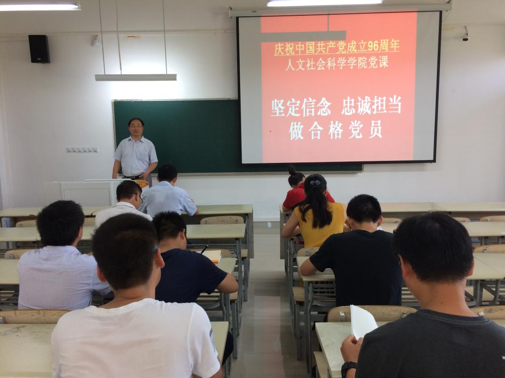 为庆祝中国共产党成立96周年,积极响应校党委组织部关于开展庆祝中国共产党成立96周年纪念活动的号召,7月4日上午,人文学院党总支副书记吴云平在崇智楼A331教室,为各支部党员上了一堂题为《坚定信念,忠诚担当,争做合格党员》的党课。院长杨力,党总支委员,各系、中心主任等认真听取了党课。