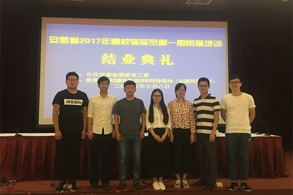 7月3日至8日,由中共安徽省委教育工委主办、教育部高校辅导员培训和研修基地(安徽师范大学)承办的安徽省2017年高校辅导员岗前培训(第一期)在芜湖海螺国际会议中心举办。我校2017年新聘7名辅导员与来自全省各地的344名辅导员参加了培训。