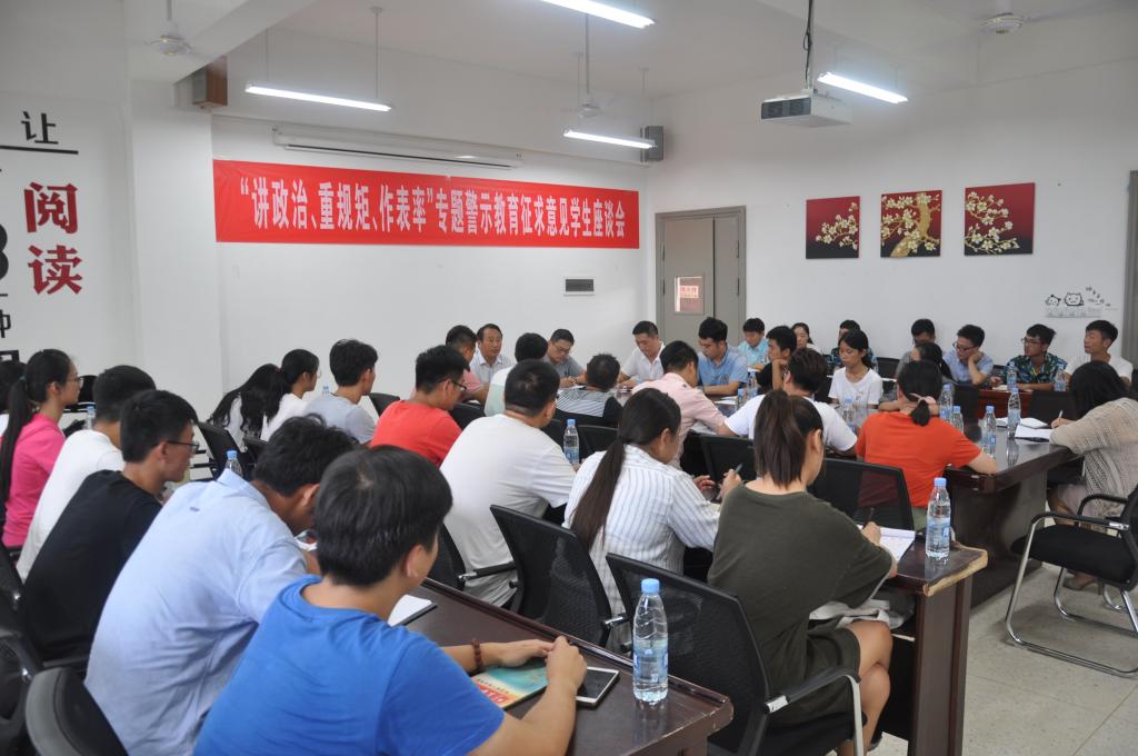 按照学校党委《关于印发< 安徽理工大学在“讲政治、重规矩、作表率”专题警示教育中开展专题民主生活会实施方案>的通知》精神,8月16日下午,学校在厚德馆三楼学生处会议室召开了学生意见征求座谈会。受副校长董雨委托,党委学工部部长田中良主持会议。