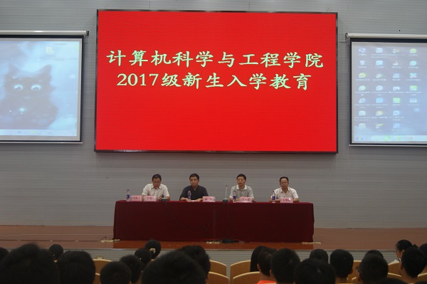 9月9日上午,计算机科学与工程学院2017级新生入学教育在舜耕会堂隆重举行。计算机学院党政领导、各专业系主任、全体辅导员、2017级新生班主任、辅导员助理以及学院2017级全体新生参加典礼。开学典礼由院行政副院长吴观茂主持。