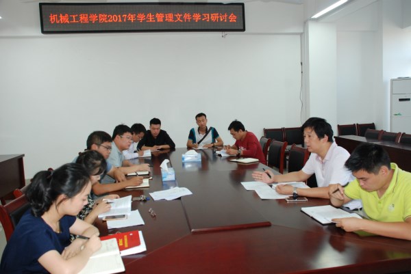 9月15日下午,机械工程学院在励学楼A402召开学生管理文件学习研讨会。全体专兼职辅导员参加了研讨会。研讨会由学院党委副书记徐育军主持。