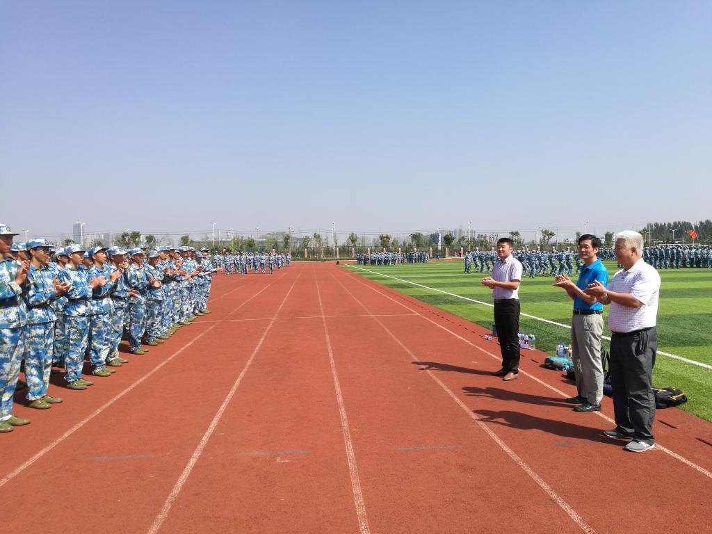 9月18日上午,力物学院党委书记张宣传、院长经来旺、党委副书记(兼副院长)张旸来到学校至诚体育场,亲切看望和慰问正在军训的2017级新生以及承训教官。