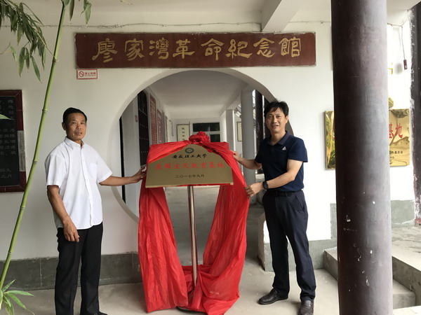 9月21日上午,我校爱国主义教育基地揭牌仪式在廖家湾革命纪念馆举行。纪念馆馆长廖胜利、马克思主义学院院长徐其清及部分青年教师参加了揭牌仪式。