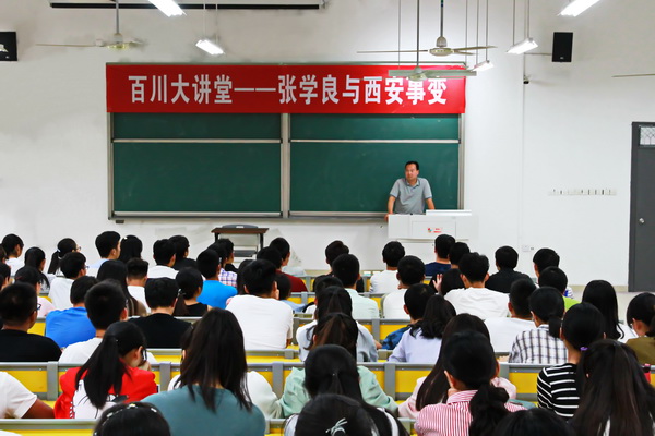 9月22日下午,党委宣传部邀请淮北师范大学曹金发教授在明理楼106教室举办了题为《张学良与西安事变》的“百川大讲堂”讲座。讲座由党委宣传部副部长(主持工作)董淑平主持。来自电气与信息工程学院和经济与管理学院的200余名师生聆听了讲座。