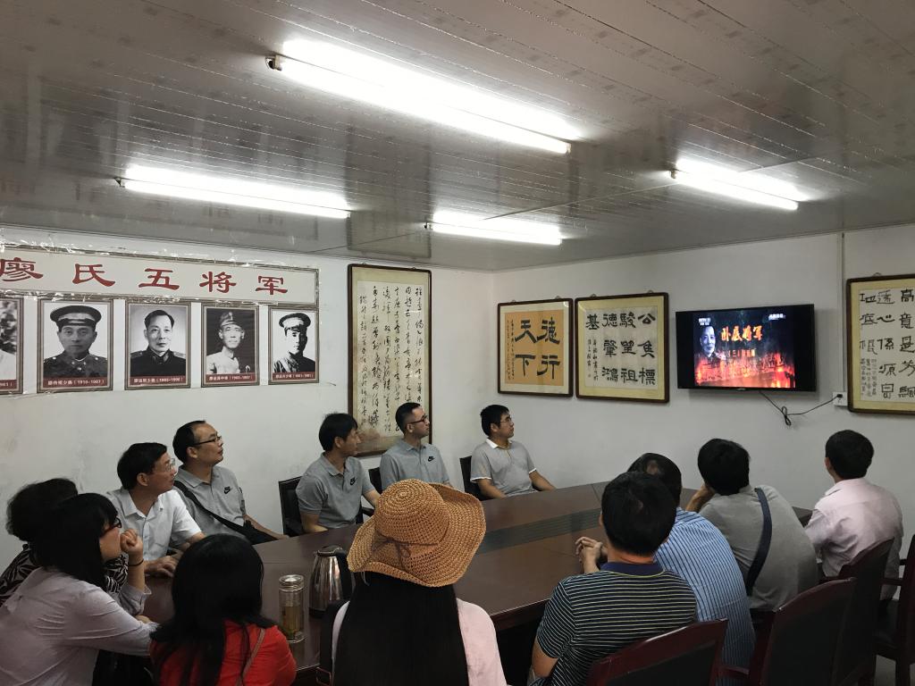 “辛亥九兄弟,结党反清廷。民国五将军,举义向光明。黄埔三十七,报国从军伍。英烈四十一,为国捐身躯。”廖家湾村有着悠久的爱国主义传统,辛亥革命以来,先后有四十余人为国捐躯,在南昌起义、淮海战役、和平解放安徽等重大历史事件中,廖氏族人均发挥了重要的进步和推动作用。大家怀着崇敬的心情,认真听取革命先烈的事迹介绍,观看图文资料和音像视频,凭吊革命纪念碑。一张张图片、一件件文物、一个个真实的故事, 生动形象地再现了廖家湾革命先烈为了国家独立、民族解放、人民幸福而浴血奋战的光辉历程,使大家的心灵深受震撼和洗礼。
