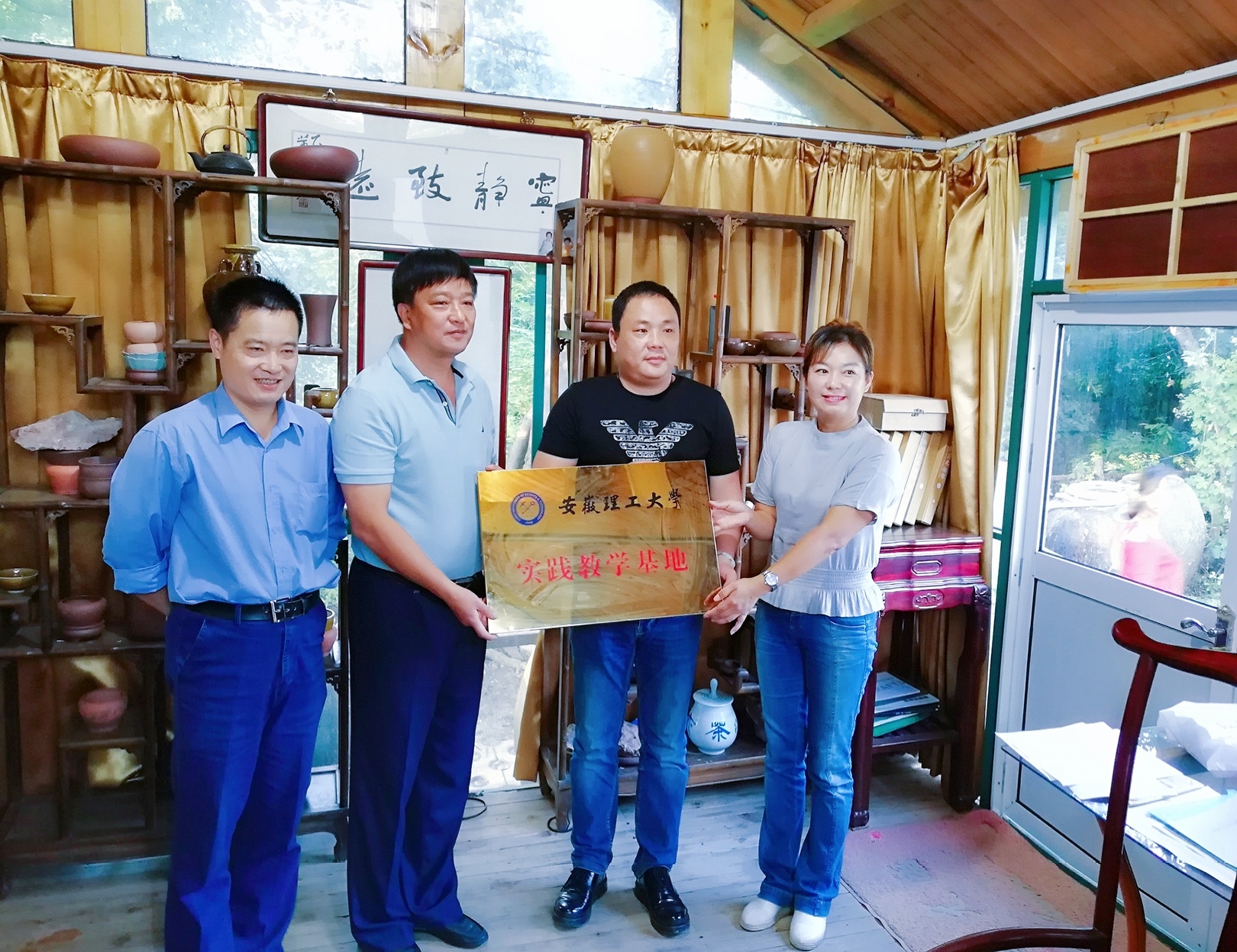 淮南古窑陶瓷有限公司坐落于淮南上窑枫林园古寿州窑遗址附近,主要从事陶瓷制品设计、生产、加工及销售,陶瓷原料的生产与销售,是一家致力于寿州窑制作技术推广的新兴企业。此次安徽理工大学实践教学基地在该公司揭牌,为今后培养高技术人才、传承淮南寿州窑文化、服务地方经济等深层次合作创立了良好的开端。淮南古窑陶瓷有限公司总经理宗涛、材料科学与工程学院党委书记何昌珏等参加签约揭牌仪式。