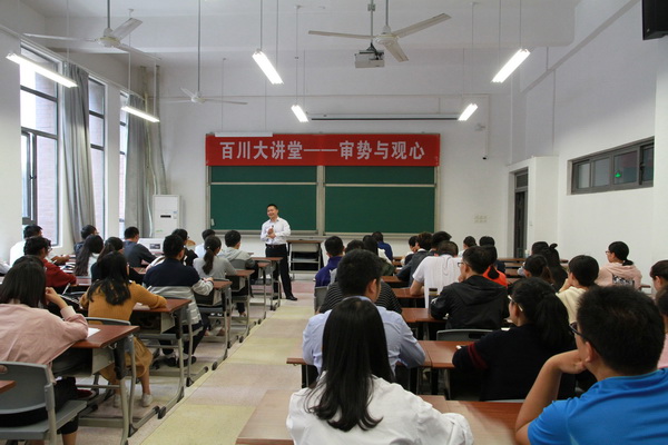 9月29日下午,党委宣传部邀请了淮南市网宣办主任吴波在明理北楼103教室举办了题为《审势与观心》的“百川大讲堂”讲座。讲座由党委宣传部副部长(主持工作)董淑平主持。学校教工通讯员、网络评论员,新媒体工作者等近100名师生聆听了讲座。