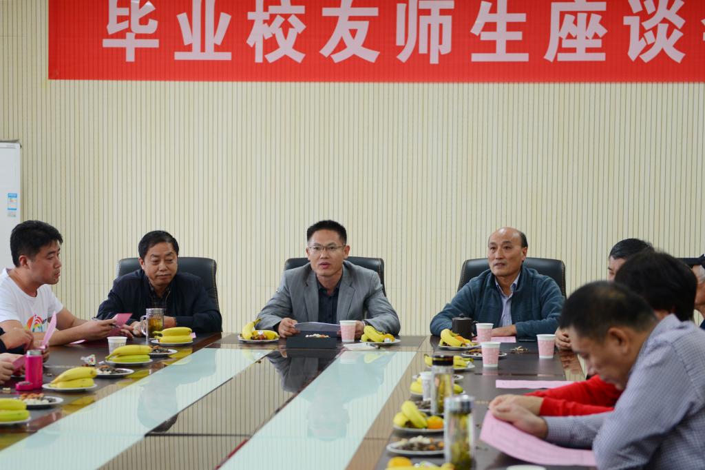 座谈会上,周峰代表学校对校友们返校表示热烈欢迎,对校友会的召开表示祝贺。他向校友们介绍了学校发展和新校区建设使用情况,希望大家继续关注和支持学校的发展,与母校常联系,常回来看看。