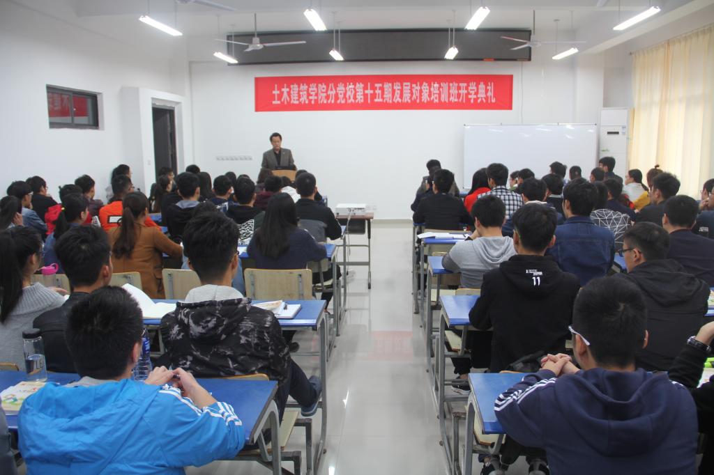 10月14日上午,土木建筑学院分党校在求是楼南227教室举行了第十五期发展对象培训班开学典礼。院党委书记、分党校校长盛真在开学典礼上讲话。开学典礼由院党委副书记丁志强主持。