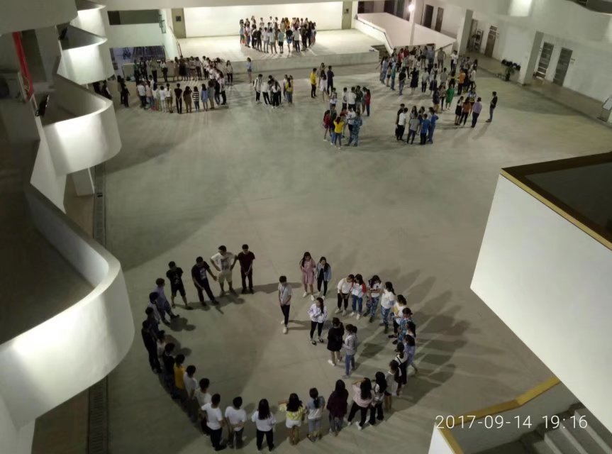 班级素质拓展训练增强归属感。由经过培训的校心理委员联合会工作人员带领同学做游戏,如“爱的抱抱”,“心有千千结”,“copy不走样”等,活动增进了团队内以及各团队之间成员的信任感、责任感,从而改善和增进团队内各成员的人际关系,加强团队间的沟通与协作,锻炼团队成员面对机遇与挑战时的反应与应对方式,从而加强新生间的了解沟通,增强学生的集体归属感,加快适应新环境。