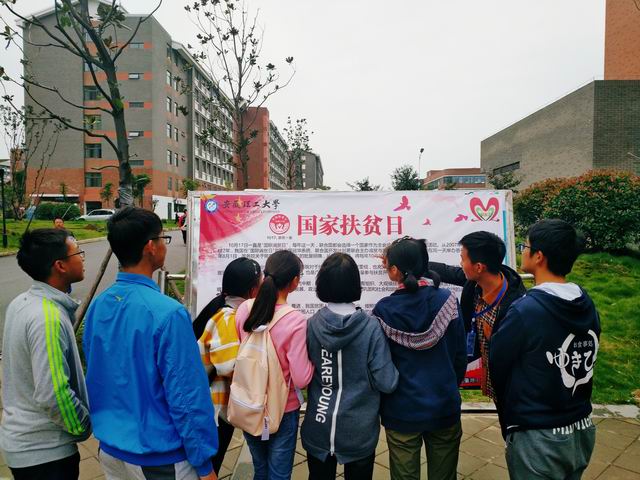为深入学习习近平总书记关于扶贫开发的重要论述,认真贯彻落实党中央、国务院和省委、省政府关于坚决打赢脱贫攻坚战的战略部署,10月17日,在全国第四个国家 “扶贫日”当天,校团委组织大学生社团联合会及公益类学生社团组织在仁苑、爱苑、信苑食堂门口,通过悬挂横幅、发放传单和扶贫政策宣传展板等形式,向青年学生宣传扶贫政策、推广扶贫救济工作。