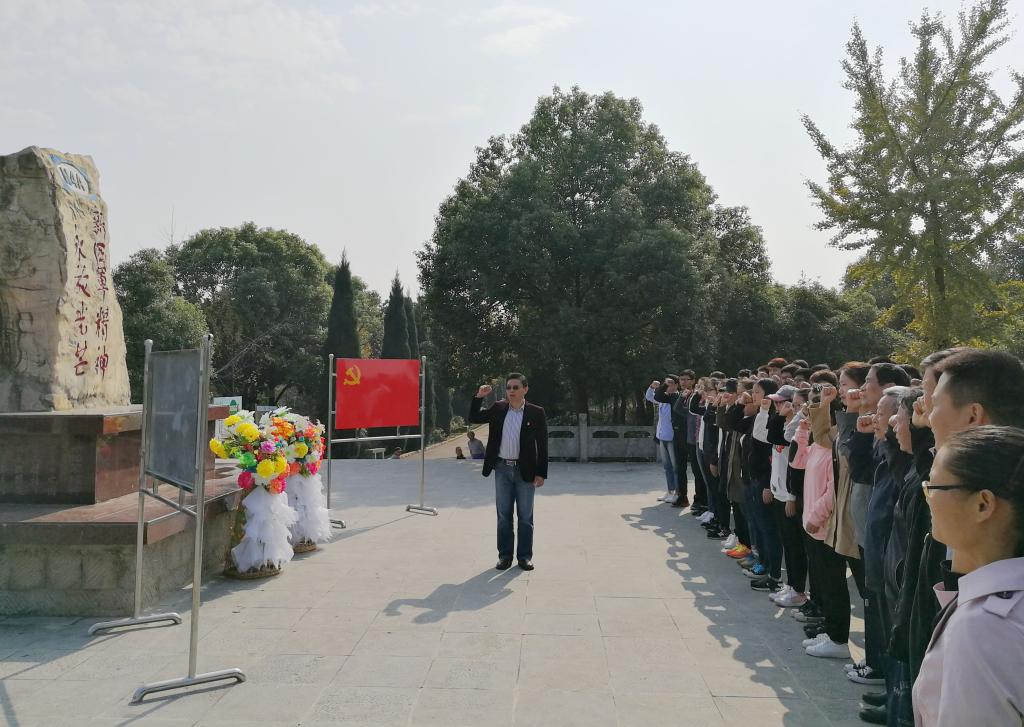 党的十九大胜利召开之际,校关工委、化学工程学院党委于10月20日组织学生辅导员、学生党员代表近80人,赴爱国主义教育基地——新四军纪念林开展主题教育活动。校关工委常务副主任李西才为大家上主题党课。