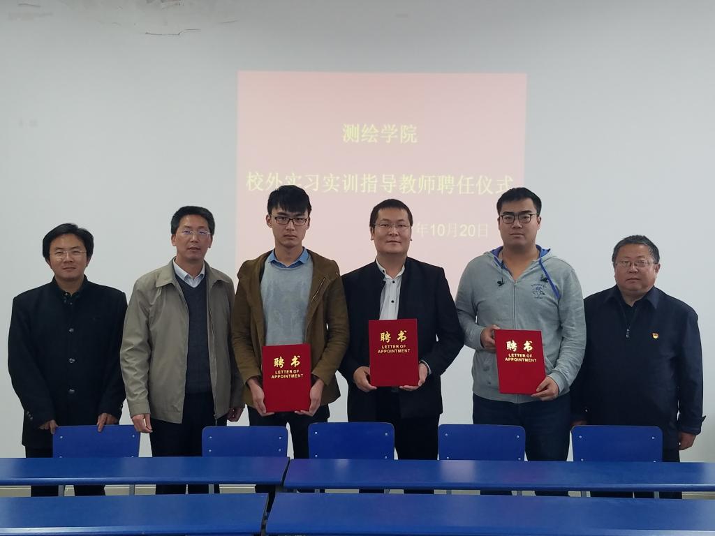 10月20日下午,测绘学院校外实习实训指导教师聘任仪式在学院北511会议室举行,聘任安徽华印机电股份有限公司的3位技术人员为校外实习实训指导教师。院党委书记吴军、院长赵志根参加聘任仪式。