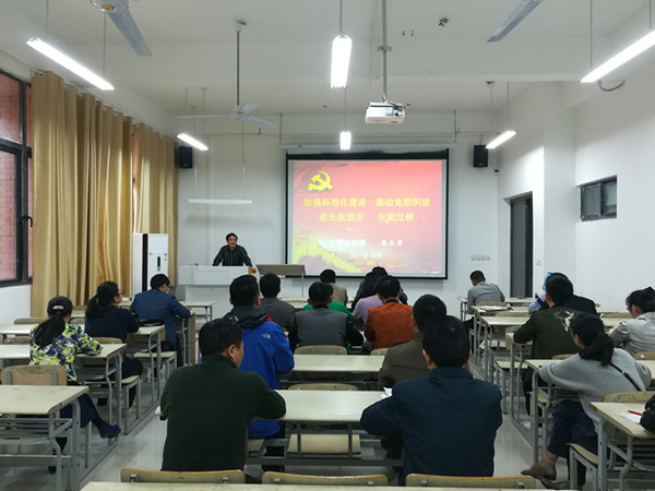 10月27日下午,学院党委邀请校党委组织部部长娄志勇在励行楼C103教室作了《加强标准化建设,推动党组织建设全面进步、全面过硬》专题报告。报告分析了我省推进党组织标准化建设的意义,详细解读了《中共安徽省委教育工委关于推进省属高校基层党组织标准化建设的实施意见》、《中共安徽理工大学委员会关于推进基层党组织标准化建设实施方案》,对学院党委和党支部推进标准化建设提出了具体的建议。