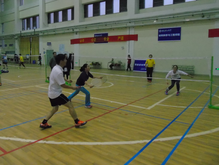 为准备即将到来的校教职工羽毛球混合团体赛,10月30日下午,外国语学院工会利用课外活动时间,在自强体育馆举行羽毛球选拔赛。10余名教职工积极参与其中。
