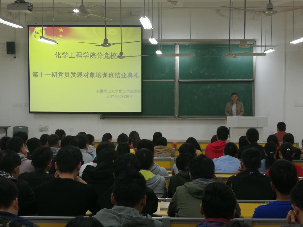 10月30日晚,化学工程学院分党校第十一期党员发展对象培训班毕业典礼在明理104隆重举行。分党校校长、学院党委书记徐冬生出席典礼并讲话。培训班班主任和培训合格的学员参加了结业典礼。