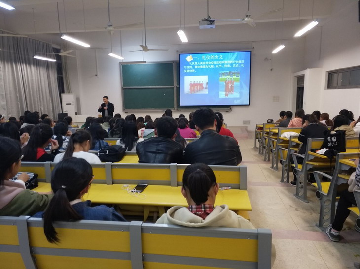 11月2日晚,外国语学院邀请毕业生就业工作处处长谢振安在明理北108教室作了题为《现代社会人际交往的基本礼仪》的专题讲座。学院党委副书记程秀霞主持讲座。学院2017级150名新生认真聆听了讲座。
