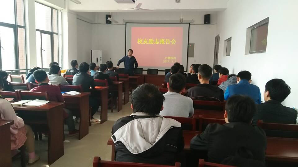 11月7日下午,力物学院在学院三楼报告厅举行校友励志报告会,计算机及应用专业2001届校友王璐和通信工程专业2017届校友马倩应邀主讲。学院2014级学生100余人听取了报告。