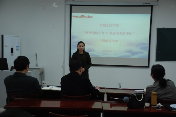 根据党委宣传部《关于举办教师“欢庆党的十九大 我看高教新变化”主题演讲比赛的通知》,11月8日下午,机械工程学院在学院B403报告厅举行“欢庆党的十九大 我看高教新变化”主题演讲比赛。
