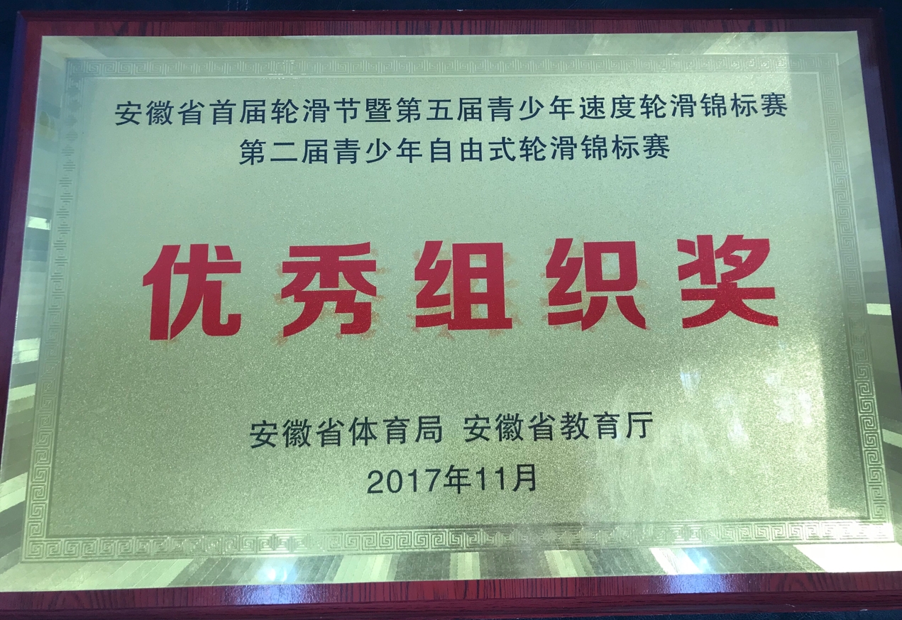 11月4日至5日,由安徽省体育局、安徽省教育厅主办的2017年安徽省首届轮滑节暨第五届青少年速度轮滑锦标赛、第二届青少年自由式轮滑锦标赛在安徽省阜南县举行。我校大学生零度轮滑社代表学校参加比赛,沈承德、张厚成、蔡朋成依次获得男子花式刹停全省第4、5、6名,朱威获得男子花式绕桩全省第5名,帅紫钰、党月晴、杨丹丹依次获得女子花式刹停和花式绕桩全省第4、5、6名;同时,学校荣获“优秀组织奖”。